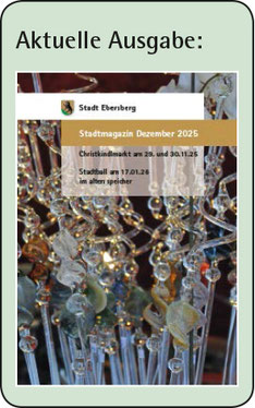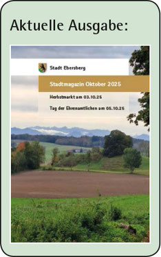 Das Ebersberger Stadtmagazin erscheint elfmal jährlich (ohne Januar, Juli/August in einer Ausgabe und zusätzlich zur Dezember Ausgabe noch eine Weihnachtsausgabe).